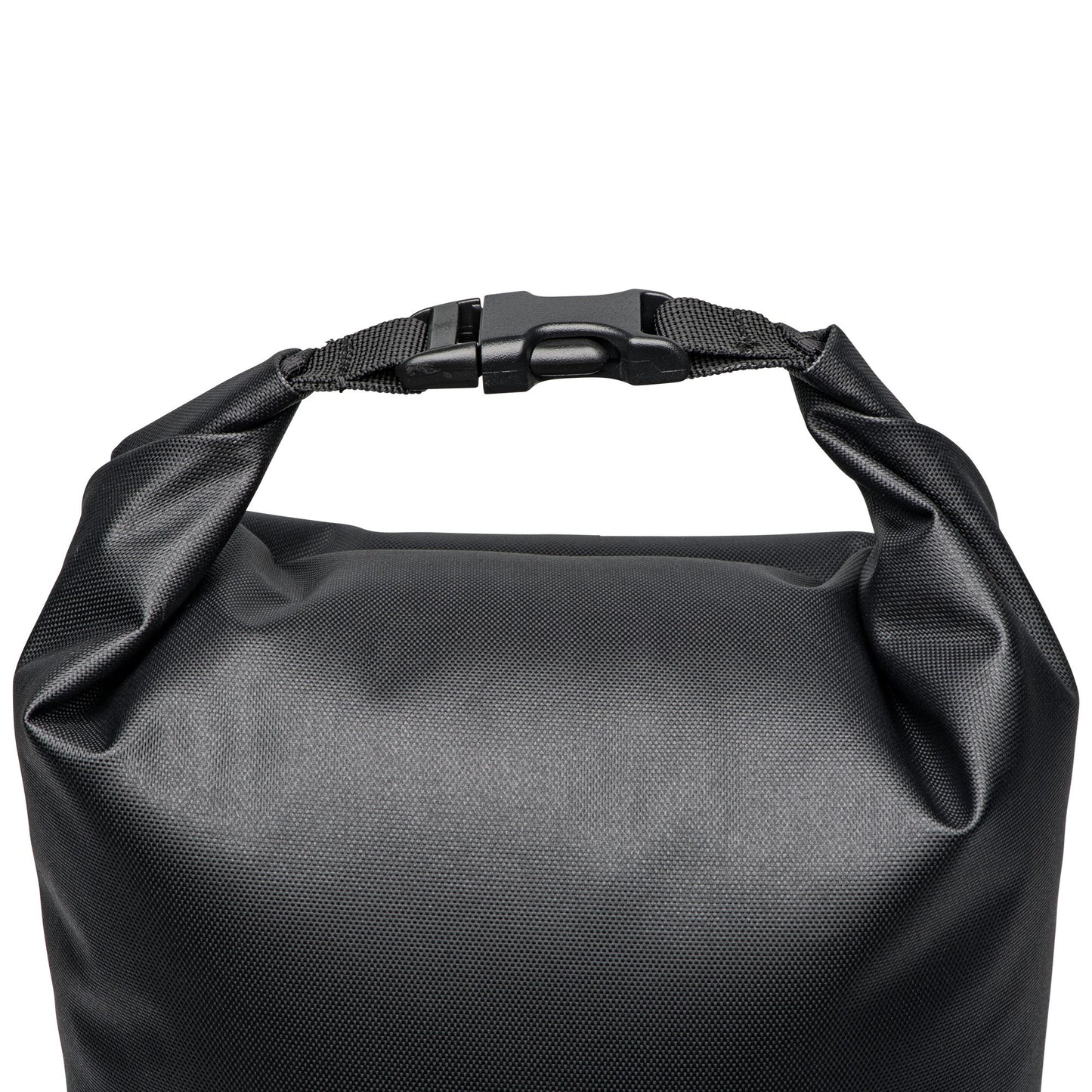 - 6.5 liters at 325mm (3 three rolls) x 150mm, can be rolled and cinched to smaller size for stability while riding