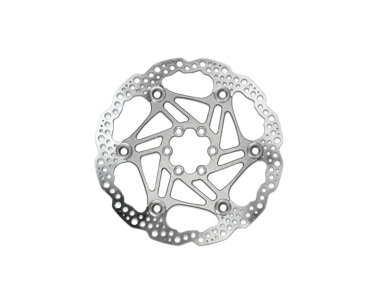 - Custom steel braking surface riveted to an aluminium central carrier