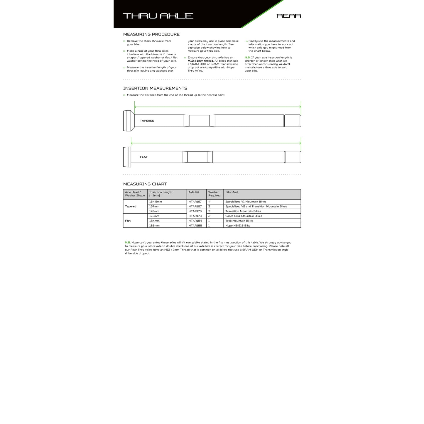 Thru Axle Selection Guide - Rear