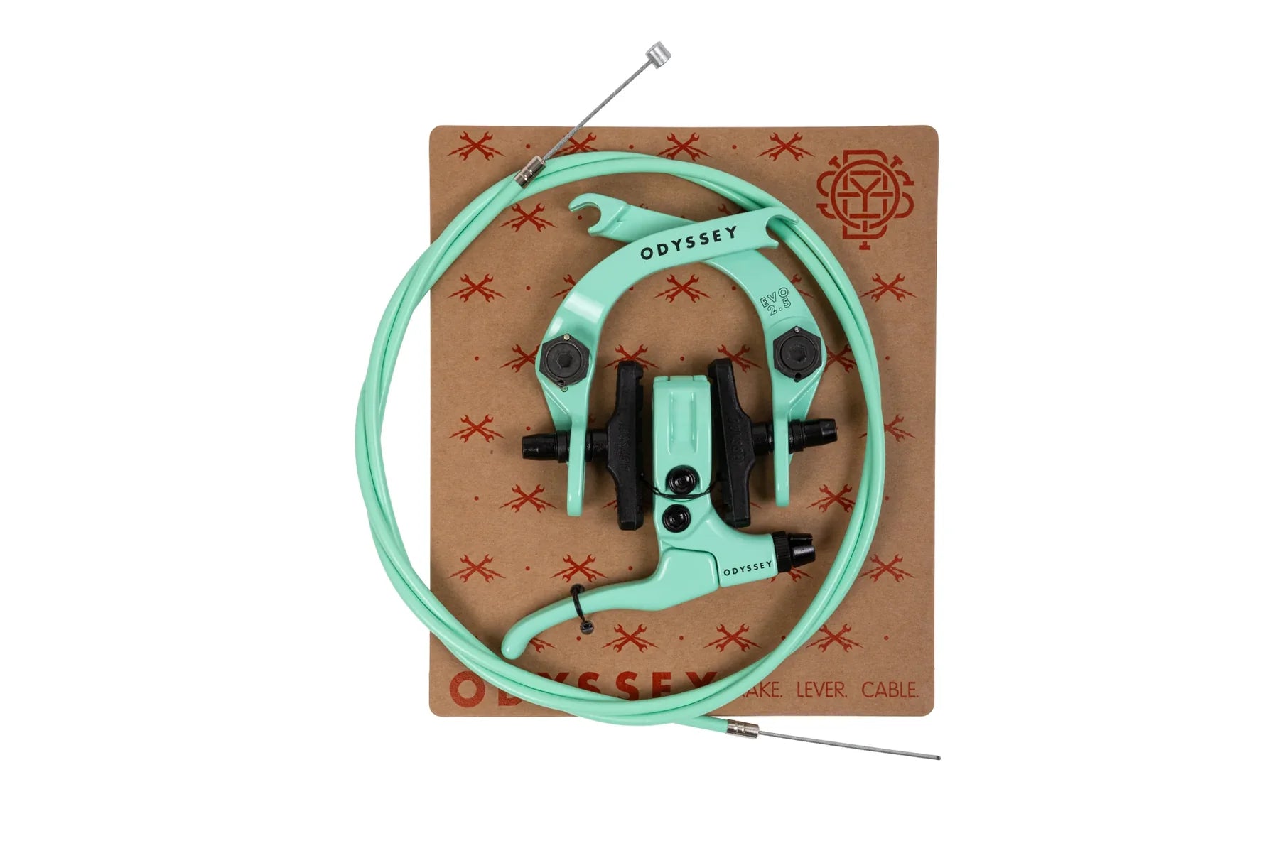 Comes with Odyssey’s convenient double lugged straddle cable, custom curved cable hanger and an array of hardware for adapting the brake to every possible set-up. Forged from aluminium for strength, and to avoid unnecessary upcharges from frivolous CNC machining.